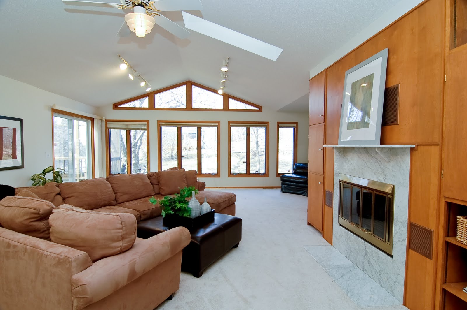 In particular, the almost-600 square foot Great Room (pictured above) features a Fireplace with granite surround, skylights, and a vaulted ceiling.